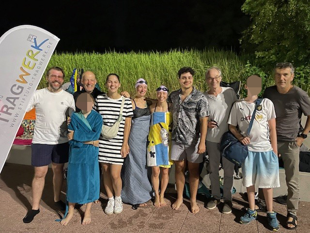 Da es unsere erste Teilnahme war, konnten wir im Vorfeld kaum einschätzen, wie das sportliche Angebot angenommen wird. Umso erfreulicher ist das Ergebnis: Insgesamt 32 Personen – darunter Vorstandsmitglieder, Mitarbeitende, Familienmitglieder, Klientinnen und Klienten – haben sich für die Stiftung ins Wasser gewagt. Die Bandbreite der zurückgelegten Distanzen reichte von 200 Metern bis zu beeindruckenden 15,3 Kilometern, sodass am Ende eine beachtliche Gesamtdistanz von 90 Kilometern und 600 Metern zusammenkam. Damit belegte die Stiftung Tragwerk bei ihrer Premiere den dritten Platz in der Kategorie Firmenmannschaften. Besonders schön war, dass auch einige Mitarbeitende gemeinsam mit Klientinnen und Klienten teilnahmen und so ein unvergessliches Erlebnis hatten – Flutlicht-Schwimmen im Freibad bei Nacht. Am Freitagabend trafen sich viele Kolleginnen und Kollegen zufällig im Freibad, was zu einem tollen Austausch und einem schönen Miteinander führte. Auch einige Kolleginnen und Kollegen, die nicht schwimmen konnten, waren vor Ort, um die Teilnehmenden seelisch zu unterstützen und den Teamgeist zu stärken.