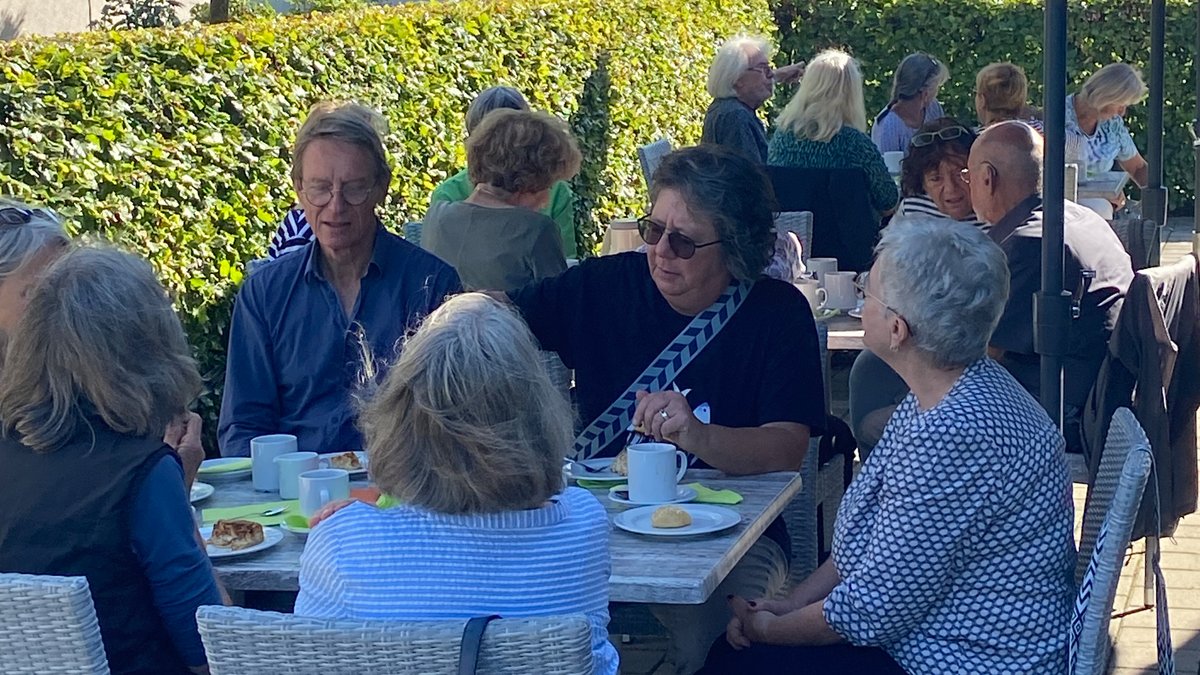 Das „Hallo" und die Gespräche waren gleich so fröhlich und intensiv, dass die ehemaligen Mitarbeitenden der Stiftung Tragwerk darauf hingewiesen werden mussten, dass es auch Sitzplätze, Kaffee und Getränke sowie selbst gemachte Flachswickel und Apfelkuchen gab. Vor allem die vielen guten Gespräche und die hervorragende Versorgung wurden besonders gelobt.