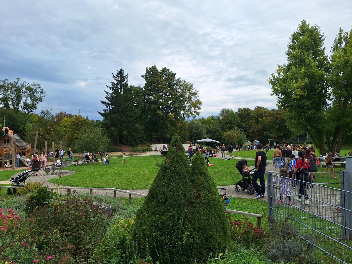 Trotz aufziehender Wolken blieb das Wetter freundlich und trocken und so füllte sich der Garten schnell mit Leben. Während die Kinder geduldig auf ihre Reitgelegenheit warteten, wurde der Spielplatz ausgiebig genutzt, Bobbycars wurden im Café ausgeliehen und flitzten über das Gelände. Auch das Café Fachwerk freute sich über regen Besuch.