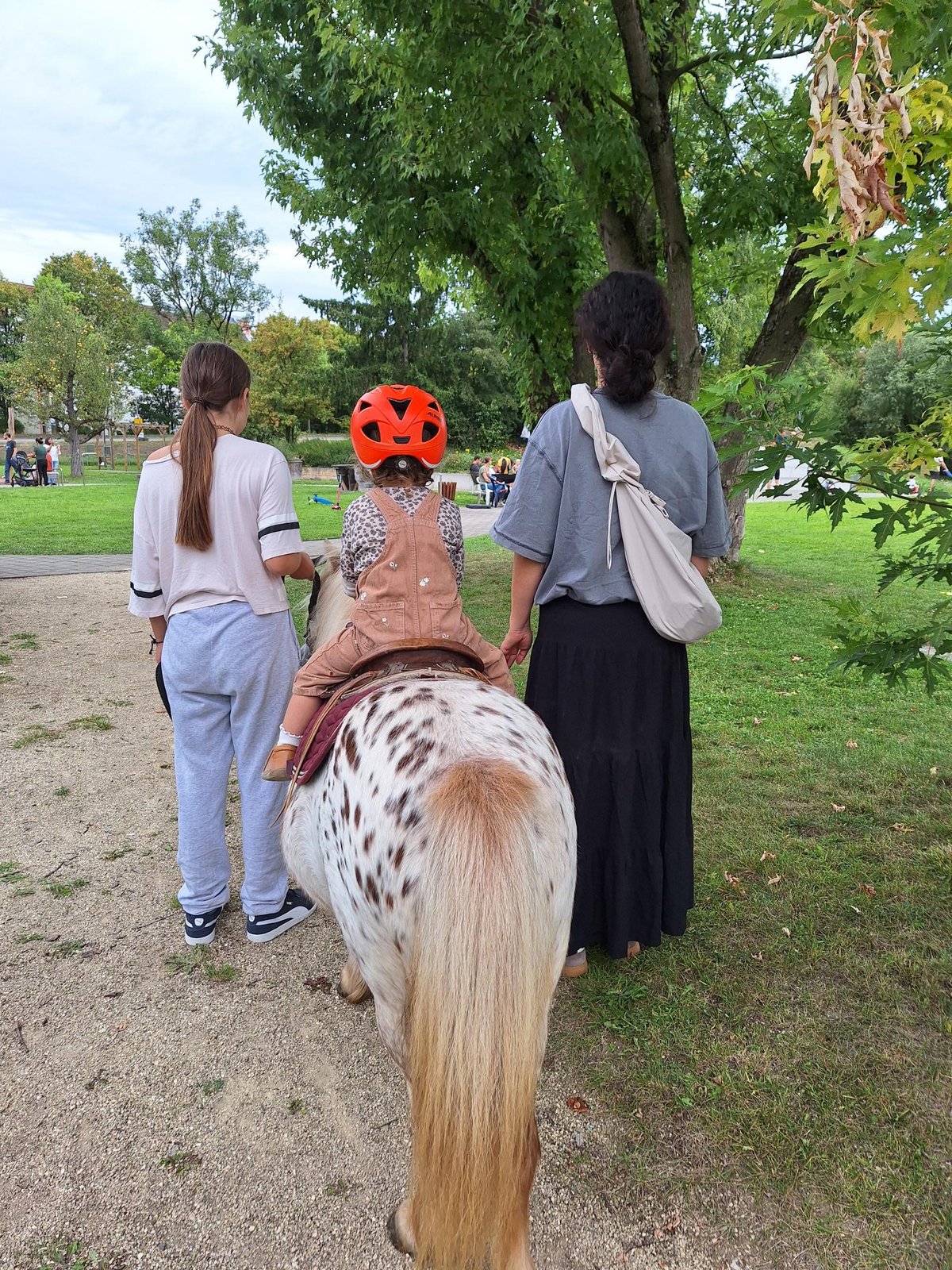 Jedes Kind durfte eine Runde auf den Ponys drehen – ein Highlight, das vor allem bei den kleinen Gästen für große Begeisterung sorgte. Die Tiere zeigten sich geduldig und freundlich und selbst die Kleinsten wagten sich mit strahlenden Augen in den Sattel. Bei entspannter Atmosphäre, guten Gesprächen und viel Lachen fanden die Veranstaltungen 2025 im Garten der Begegnung einen sehr gelungenen Ausklang. Zum krönenden Abschluss statteten sogar die Ponys dem Café Fachwerk noch einen Besuch ab – und gönnten sich (natürlich nur symbolisch) ein wohlverdientes Eis.