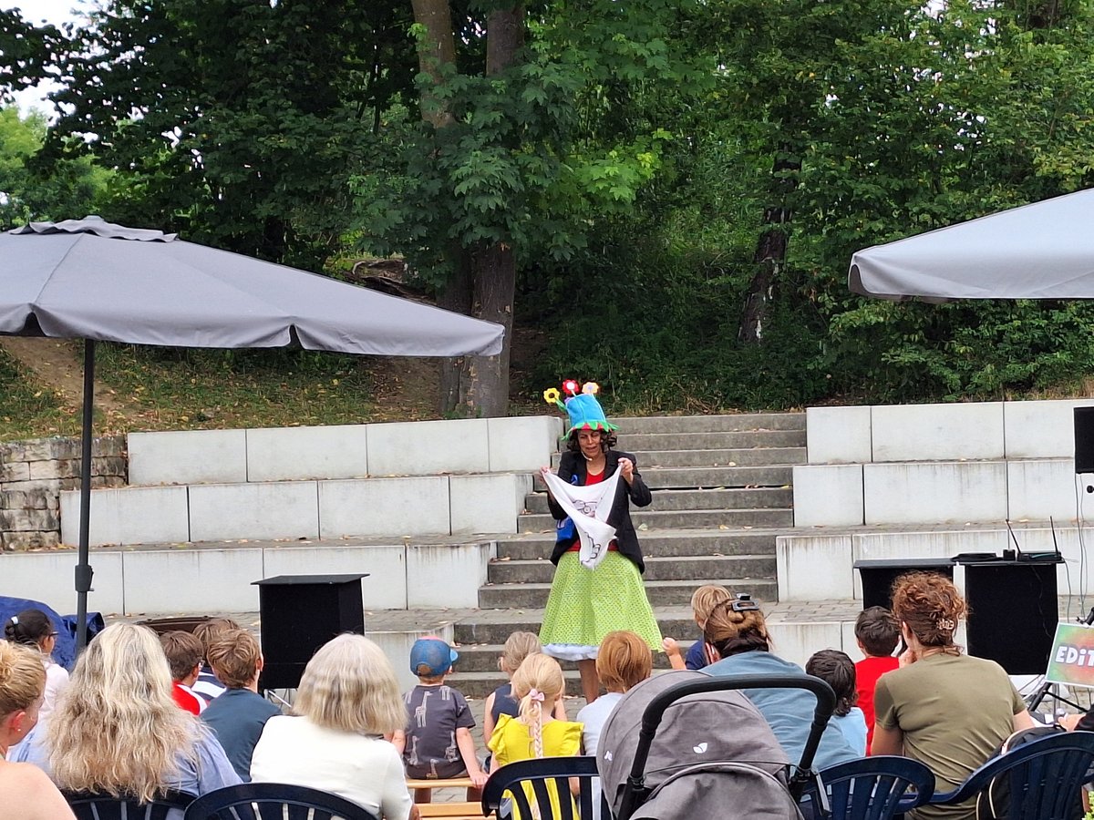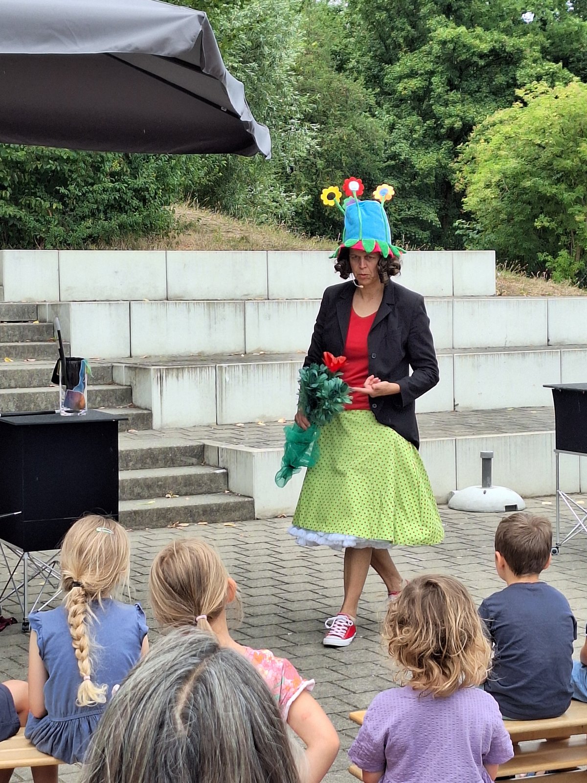 Trotz kurzen Regenschauern ließ sich die Stimmung nicht trüben: Editha verzauberte ihr Publikum mit verblüffenden Tricks und jeder Menge Humor.