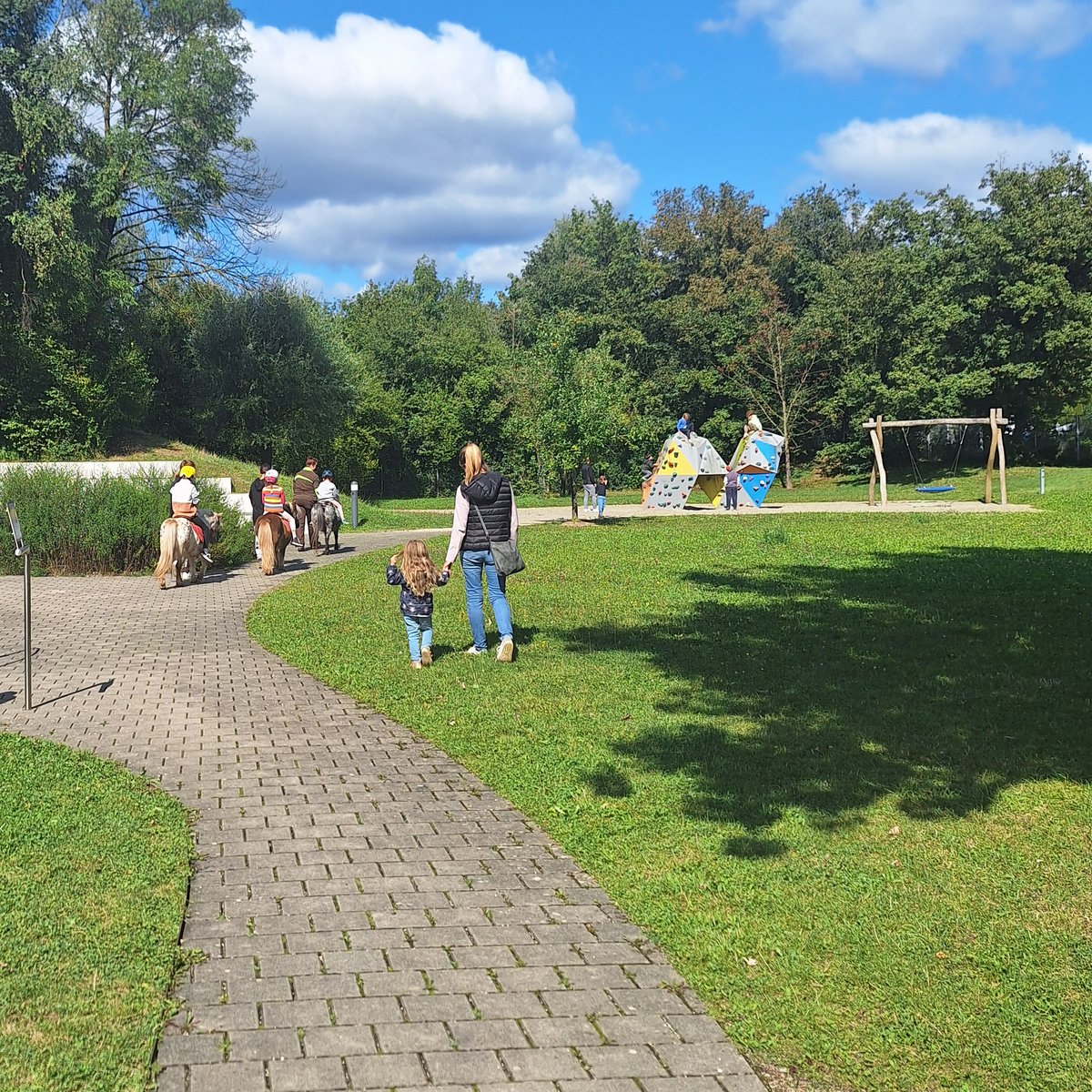 Es war Leben im Garten der Begegnung: etwa 150 Besucher - Kinder, Eltern und Großeltern - warteten geduldig darauf, eine Runde mit den süßen Ponys zu drehen, spielten im Sandkasten und auf dem Spielplatz, genossen die Sonne, gute Gespräche und die leckeren Angebote im Café Fachwerk. Kurz nach 16 Uhr waren die Ponys von ihrem Dauereinsatz doch etwas müde und ein gelungener spätsommerlicher Nachmittag mit zufriedenen Gästen ging langsam zu Ende.
