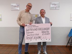 Die Firma Mosolf spendet traditionell zum Jahresende großzügige Summen an Schulen und soziale Einrichtungen. Insgesamt 24.000 Euro verteilte der Kirchheimer Fahrzeuglogistiker in diesem Jahr. Die Janusz-Korczak-Schule der Stiftung Tragwerk darf sich über 2.000 Euro freuen. Vorstandsvorsitzender Jörg Mosolf erklärte bei der Spendenscheckübergabe in der Firmenzentrale: „Es geht uns darum, Kindern die Chance zu geben, sich Optionen zu erarbeiten, um die Zukunft zu gestalten.“
